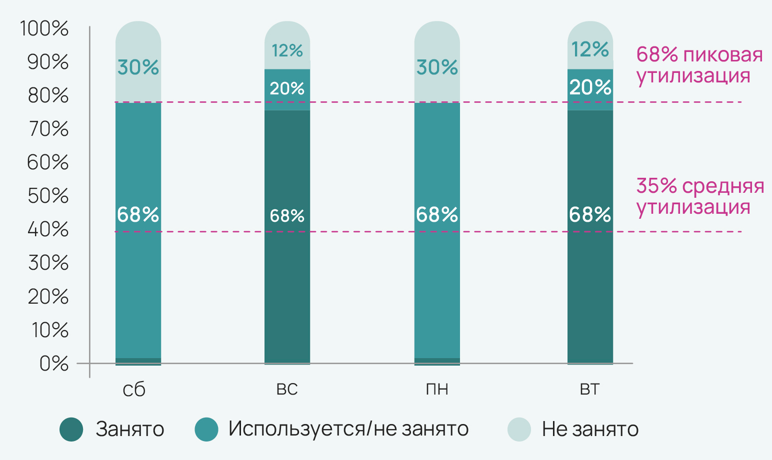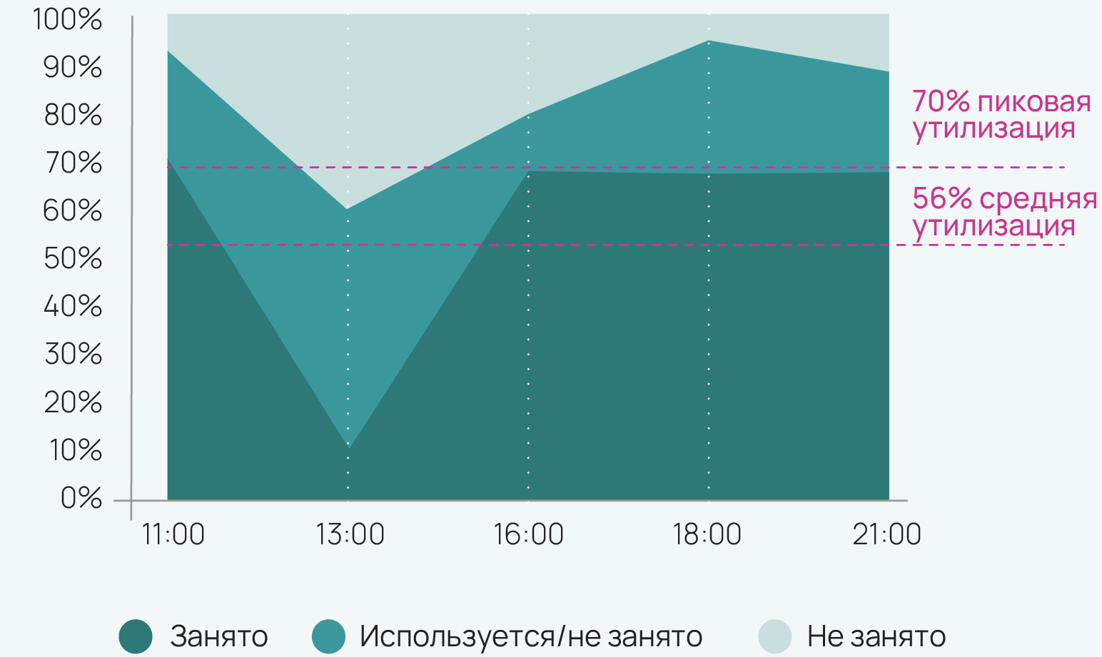 Количественные замеры фактической занятости и формата использования разных зон вашего офиса.